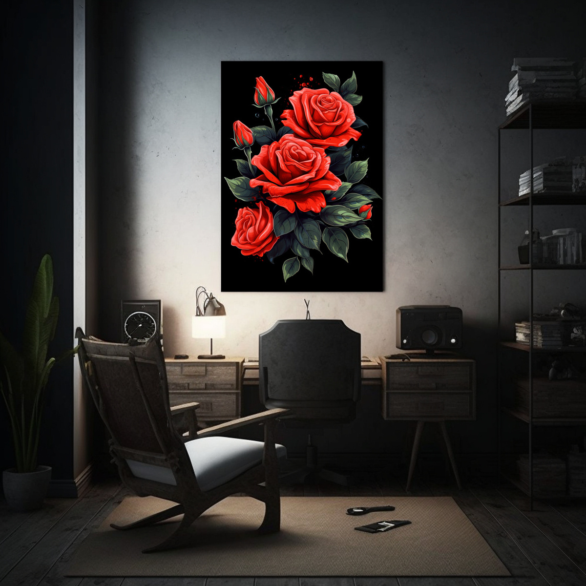 El cuadro decorativo de ramo de rosas rojas acuarela de DecoCuadros es perfecto para darle un toque de elegancia y color a cualquier espacio ¡Compra ahora!