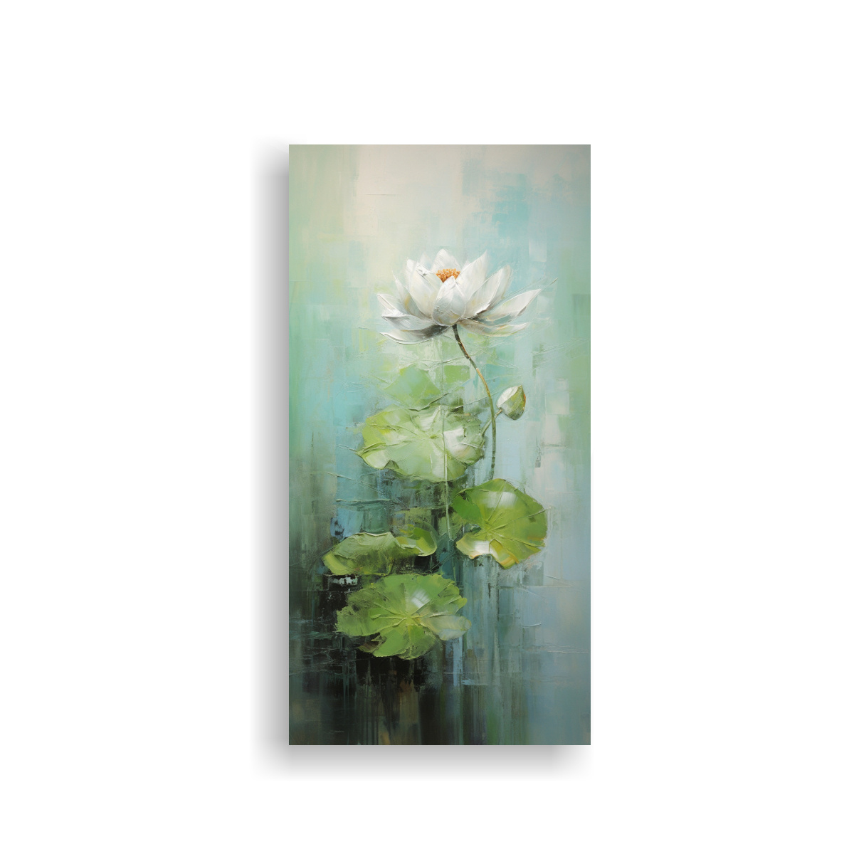 Pintura Abstracta De Loto Verde En Lienzo, Estilo Composición Habitación