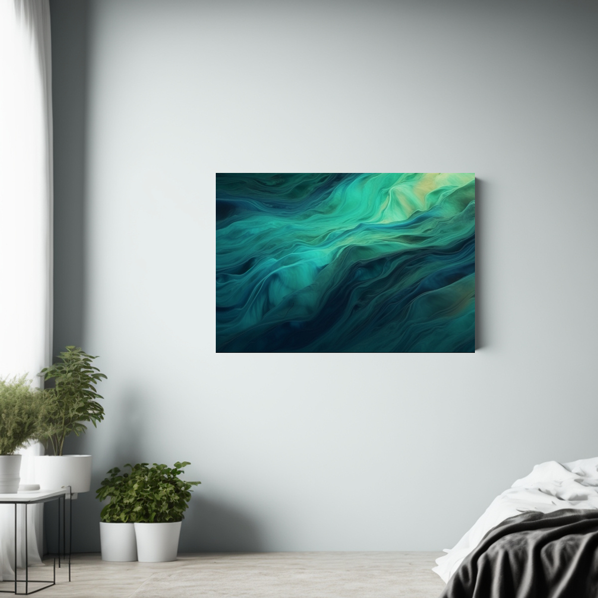 Coloca este cuadro en tu sala de estar para crear un ambiente de serenidad y frescura Combínalo con muebles en tonos neutros y accesorios plateados para resaltar su elegancia ¡Transforma tu espacio en un oasis de tranquilidad con esta obra de arte única!