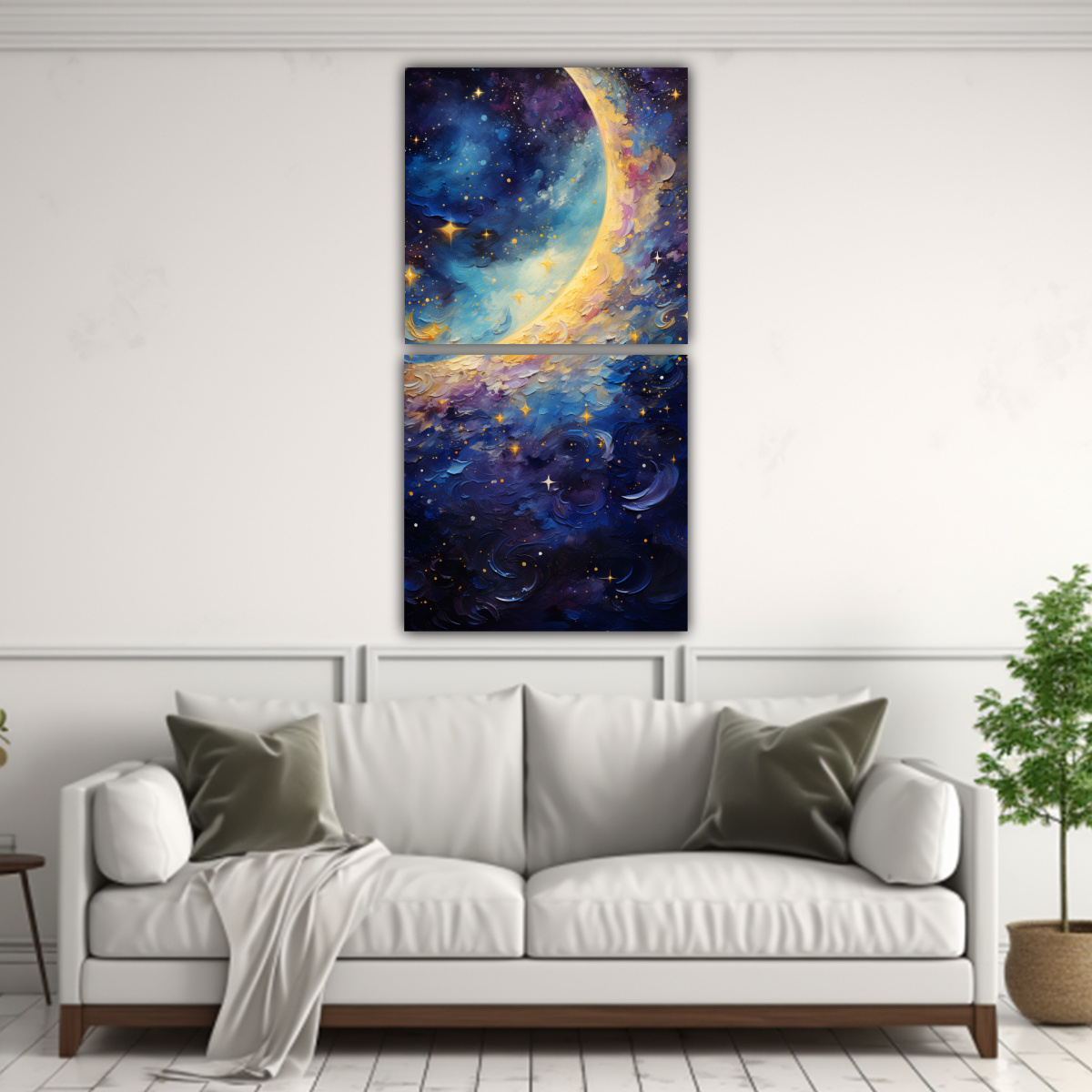 DecoCuadros te ofrece una amplia selección de cuadros decorativos impresos en tela de alta calidad con diseños exclusivos Nuestro cuadro de luna creciente al detalle es perfecto para añadir un toque de serenidad y elegancia a cualquier espacio Con colores plateado, azul marino grisaceo, turquesa, gris, menta, mostaza y carmesí, este cuadro seguramente capturará la atención de todos Ofrecemos los precios más económicos del mercado sin comprometer la calidad Además, contamos con las entregas más rápidas y gratuitas en Santiago y envíos express a todas las regiones