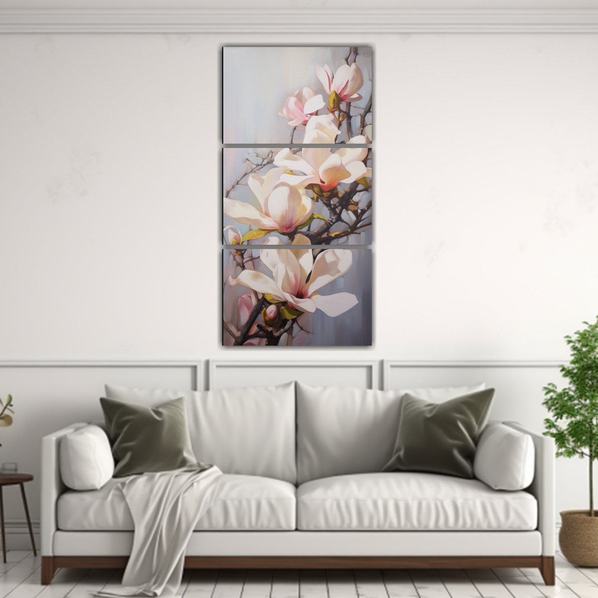 Pintura Abstracta De Magnolias En Tonos Modernos, Arte Fino En óleo Detallado