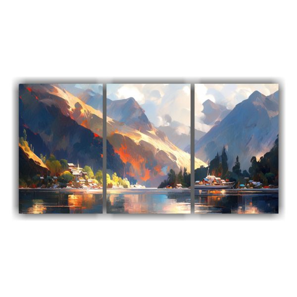 Pintura Abstracta De Montañas Junto Al Lago Con Relieve Blanco