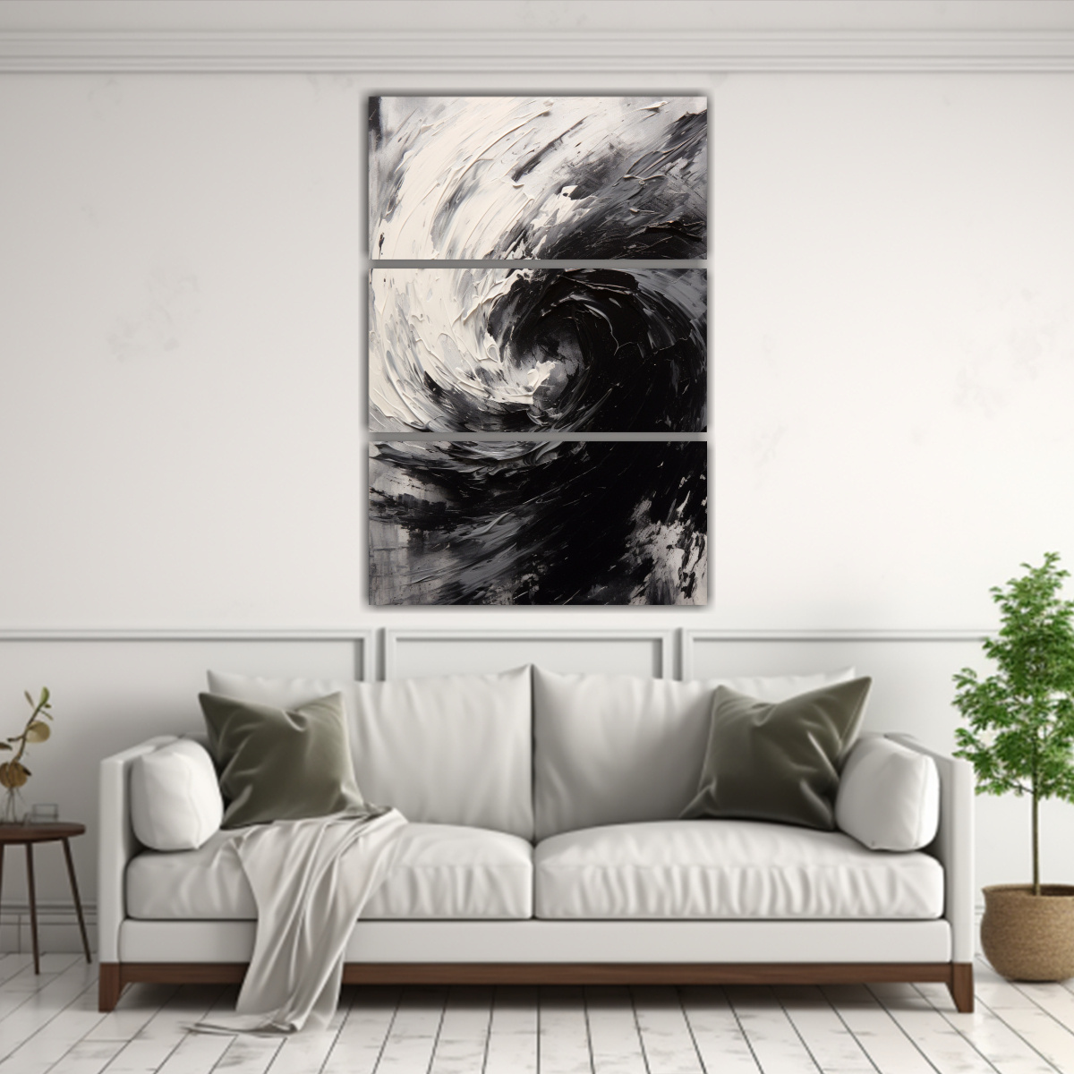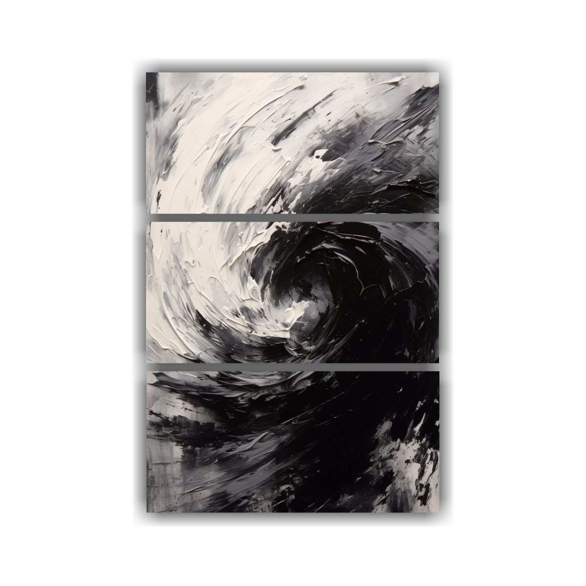Pintura Abstracta De óleo En Blanco Y Negro, Líneas Finas, Tema De Tres Lienzos