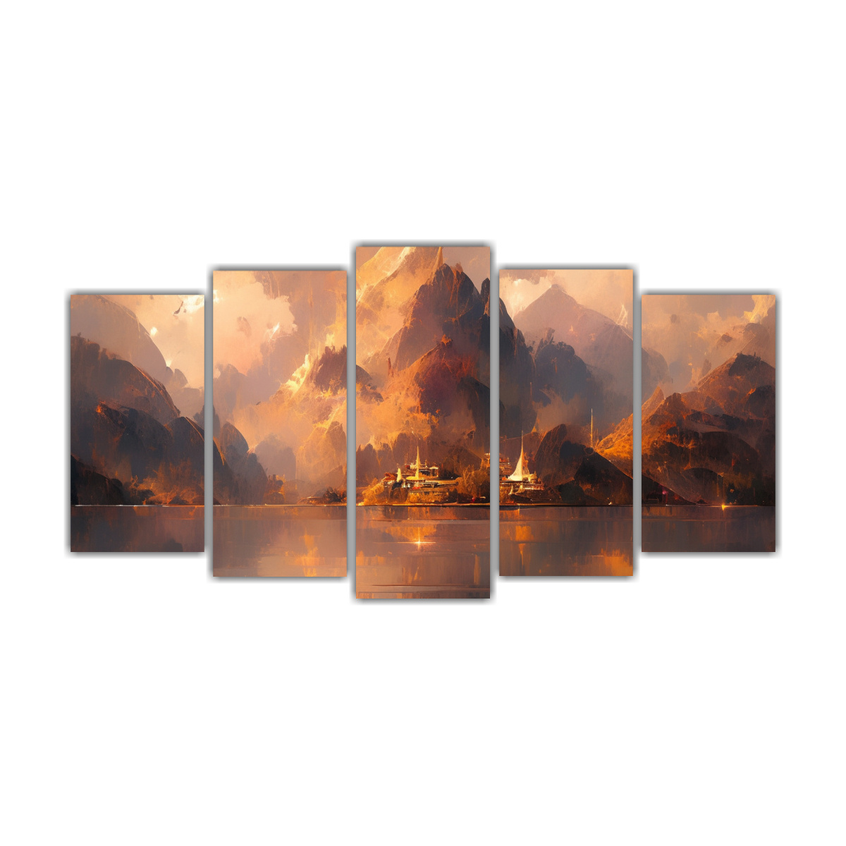 Pintura Abstracta De Paisaje Con Colores Dorados En Un Lago Montañoso
