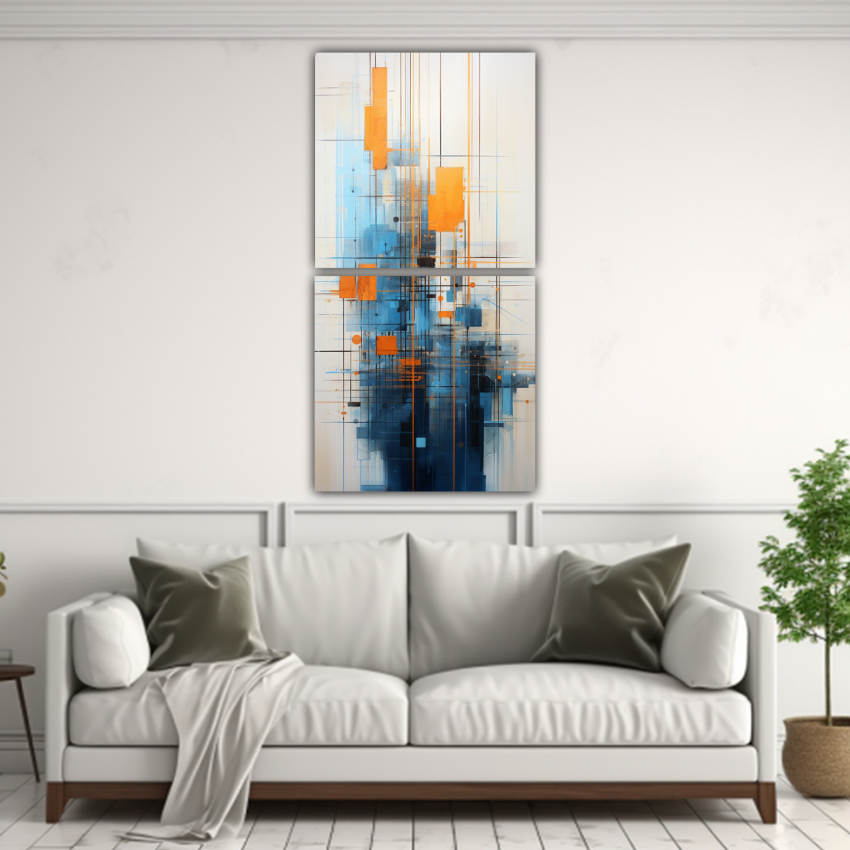 Este cuadro abstracto de paisaje urbano en azul y naranja es perfecto para resaltar en la sala de estar Colócalo sobre un sofá gris claro o beige para crear un contraste elegante y moderno Combínalo con cojines en tonos azules y naranjas para completar la armonía del espacio También puedes colocarlo en el estudio o en la oficina para agregar un toque de creatividad ¡Deja que este cuadro sea el centro de atención en tu decoración!
