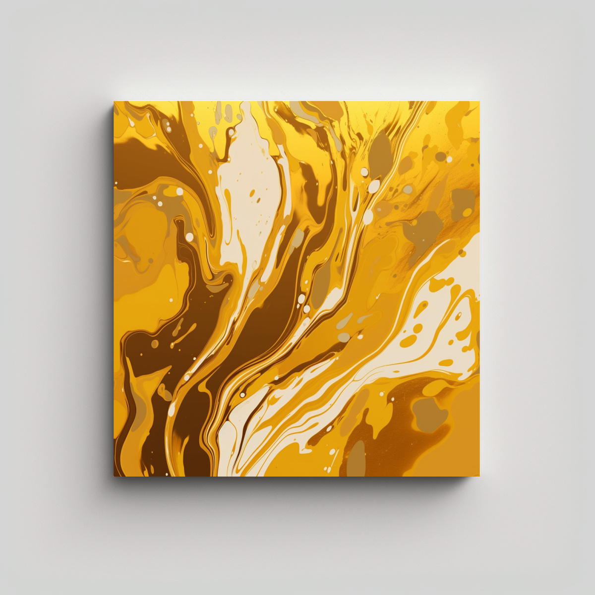 Pintura Abstracta De Pared En Fondo Líquido Dorado, Profundidad Y Color Plano