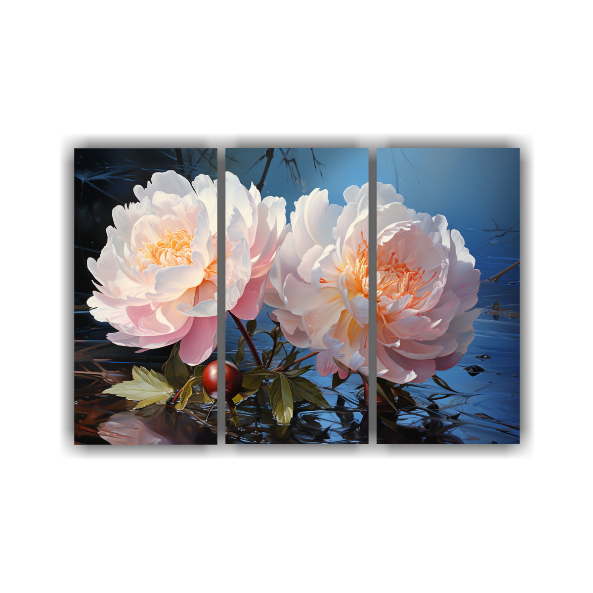 Agrega un toque de elegancia y frescura a tu sala de estar, dormitorio o incluso a tu oficina con este set de 3 artes Colores como plateado, azul marino grisaceo, gris, turquesa, coral y carmesí se combinan para crear una atmósfera cálida y sofisticada