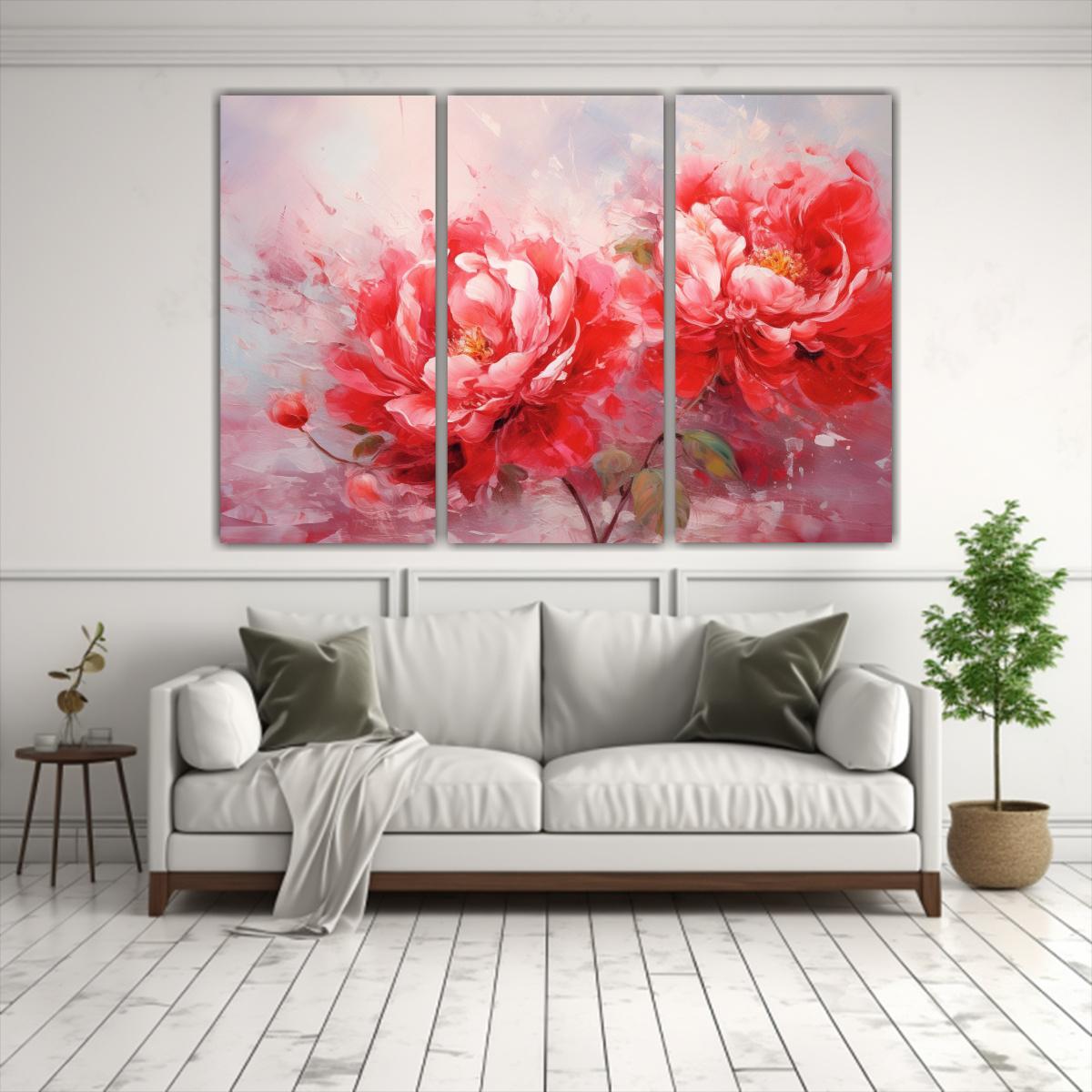 Este cuadro de peonías rojas en acuarela se verá espectacular en tu sala de estar sobre un sofá de color neutro, aportando un toque de elegancia y color Combínalo con cojines en tonos suaves para lograr una armonía visual única