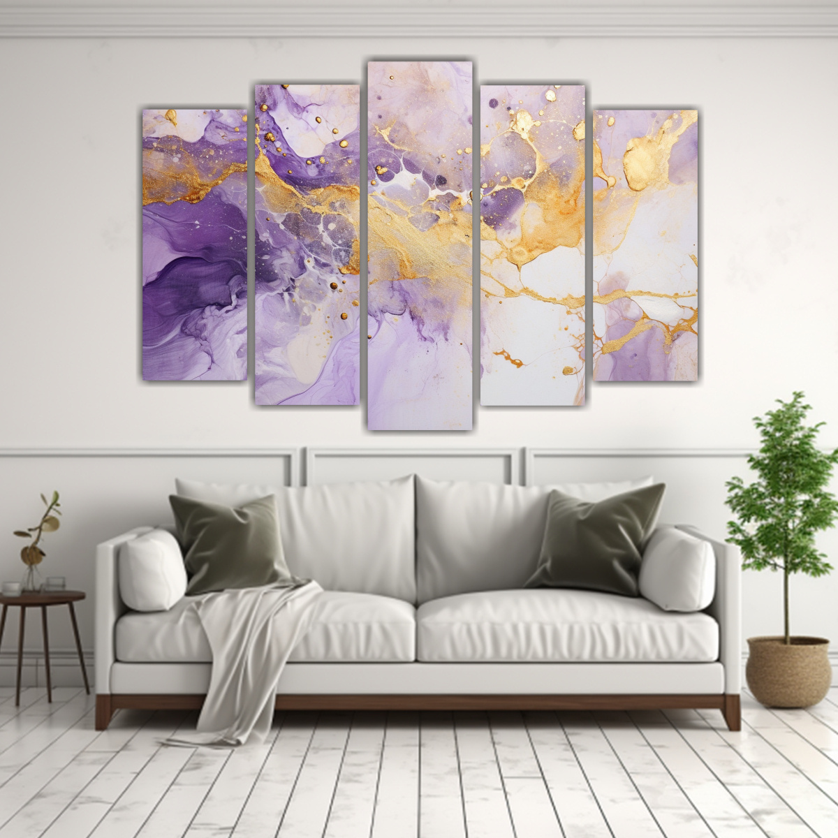 Pintura Abstracta De Remolinos Púrpuras Y Dorados.