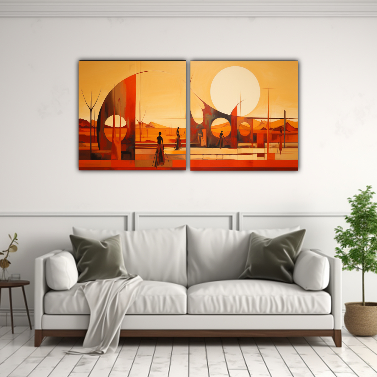 Este cuadro decorativo abstracto de representación egipcia antigua en lienzo se vería espectacular en una sala de estar moderna Combínalo con muebles de colores neutros como beige o gris claro para resaltar los tonos vibrantes del cuadro También puedes agregar cojines en tonos dorados o anaranjados para crear un contraste interesante Colócalo sobre un sofá o en una pared vacía para crear un punto focal llamativo ¡Sorprende a tus invitados con este cuadro exclusivo y dale un toque de elegancia a tu hogar!
