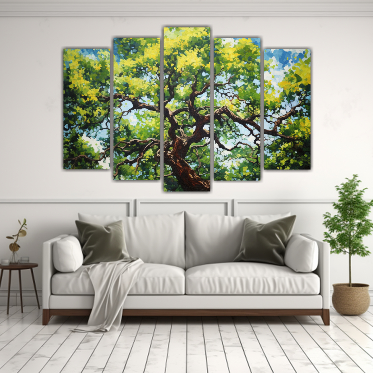 Este cuadro abstracto de roble encajaría perfectamente en una sala de estar de estilo moderno, junto a muebles de tonos neutros y accesorios en dorado para resaltar los colores de la pintura ¡Atrévete a darle un toque elegante a tu hogar con este diseño exclusivo de DecoCuadros!