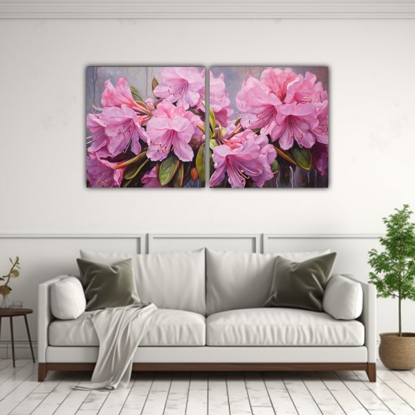 Este cuadro abstracto de rododendros en bastidor se vería perfecto en un salón moderno o una oficina elegante Combínalo con muebles de tonos neutros para resaltar su belleza y crear un ambiente sofisticado ¡Atrévete a darle vida a tus paredes con esta obra de arte única!