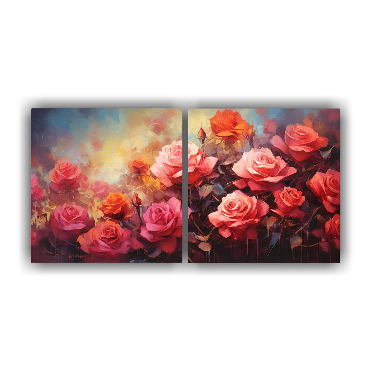 Añade un toque de elegancia a tu sala de estar con esta hermosa pintura abstracta de rosas en estilo detallado Los colores vibrantes como el coral y el plateado le darán vida a tus paredes Combínalo con muebles en tonos neutros para resaltar su belleza