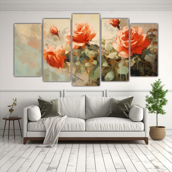 Este cuadro abstracto de rosas en tonos Plateado, Carmesí, Azul Marino grisáceo, Chocolate, Gris y Coral sería ideal para decorar tu sala de estar o dormitorio Combínalo con muebles en tonos neutros para resaltar su belleza y crear un ambiente elegante y sofisticado
