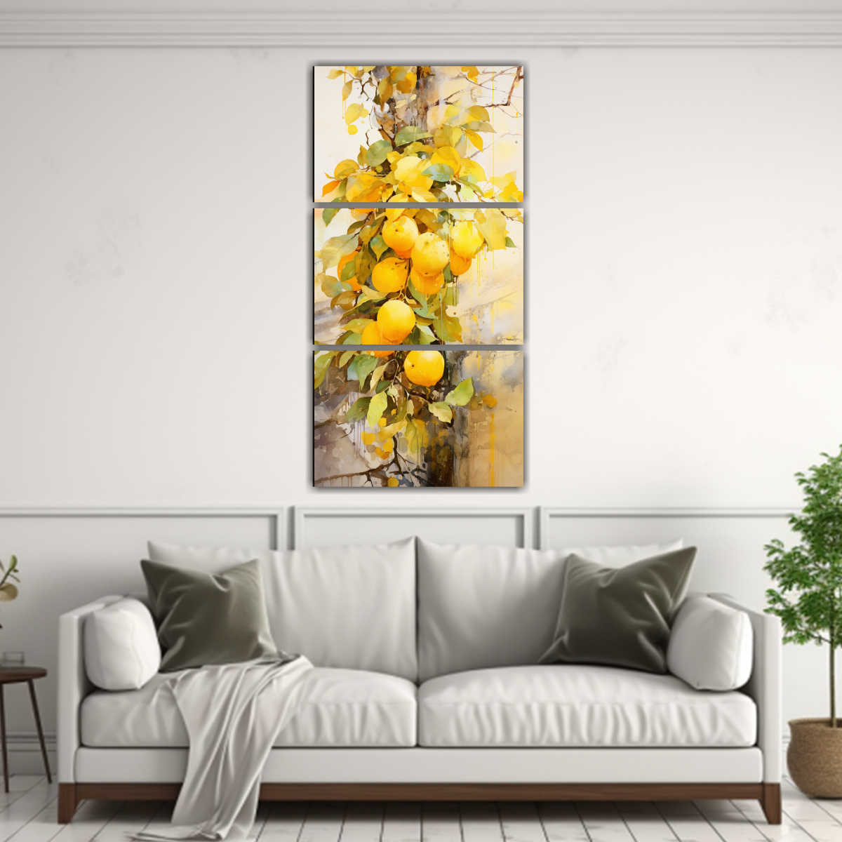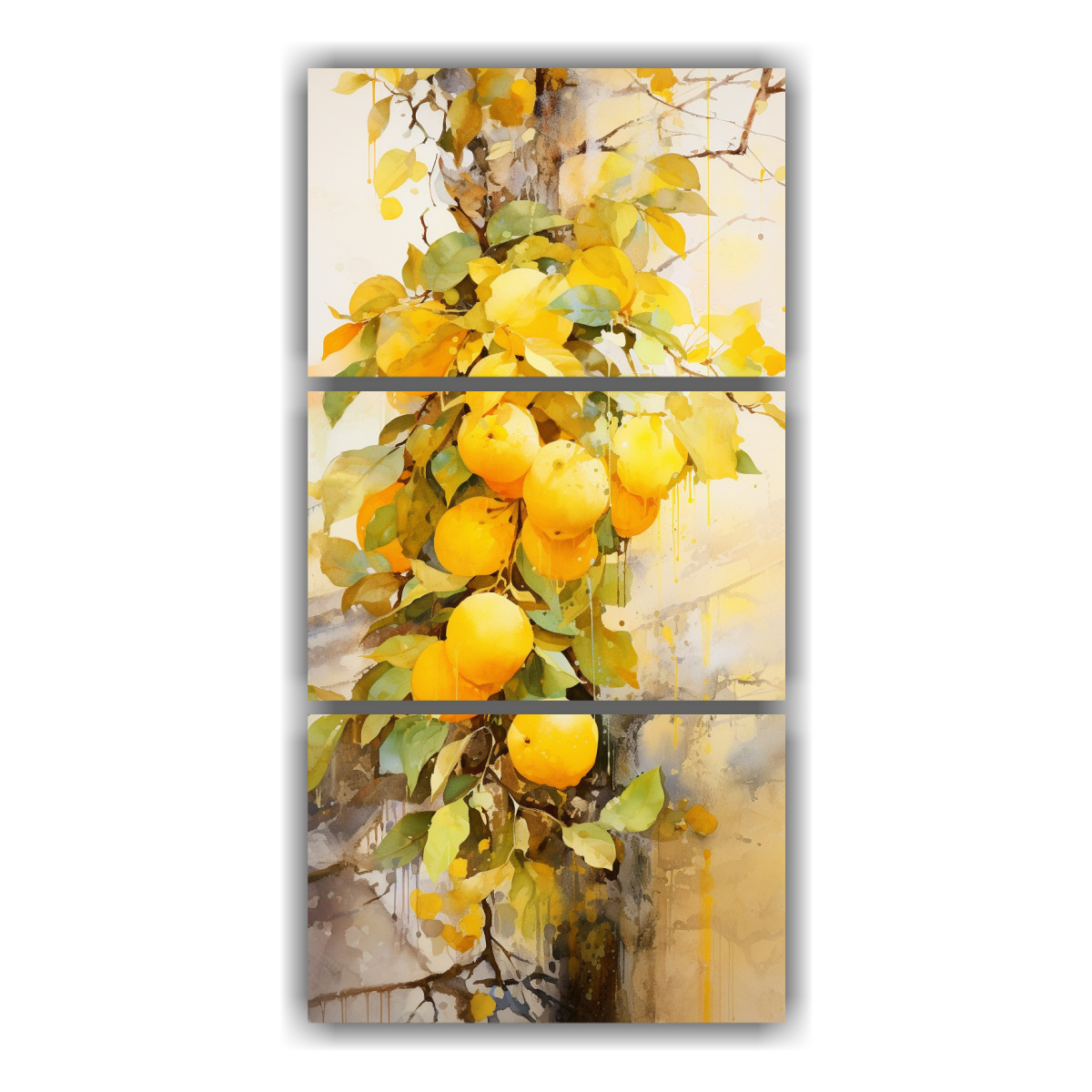 Este cuadro abstracto de tres árboles frutales en tonos amarillos luciría perfecto en el área de comedor de tu hogar Colócalo sobre una pared clara para resaltar sus colores cálidos y crear un ambiente acogedor y sofisticado Combínalo con muebles de madera y detalles en tonos neutros para un look armonioso