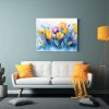 Este cuadro abstracto de tulipanes amarillos y azules es ideal para decorar salas de estar, dormitorios o incluso oficinas Combínalo con muebles en tonos neutros para lograr un contraste elegante y moderno Colócalo sobre un sofá o en una pared principal para crear un punto focal impactante