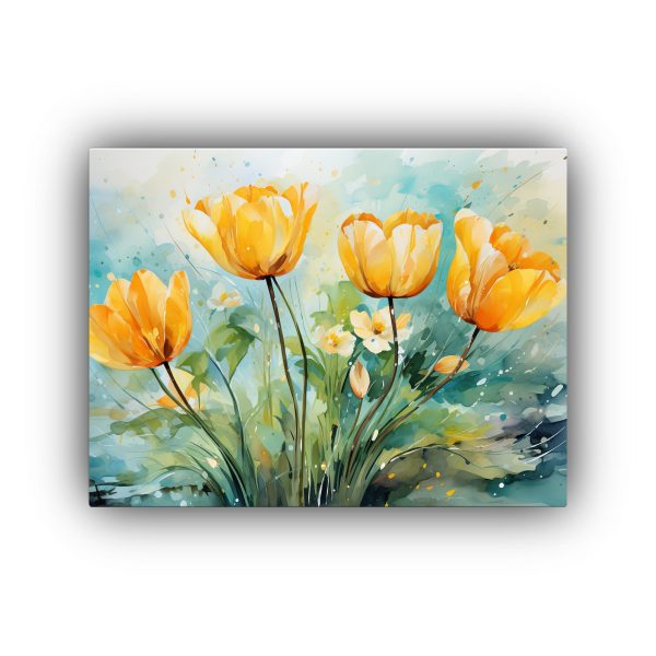 Este cuadro abstracto de tulipanes amarillos y verdes se vería espectacular en un ambiente moderno, como la sala de estar o el estudio Combínalo con muebles de tonos neutros para resaltar su vibrante paleta de colores y crear un ambiente sofisticado