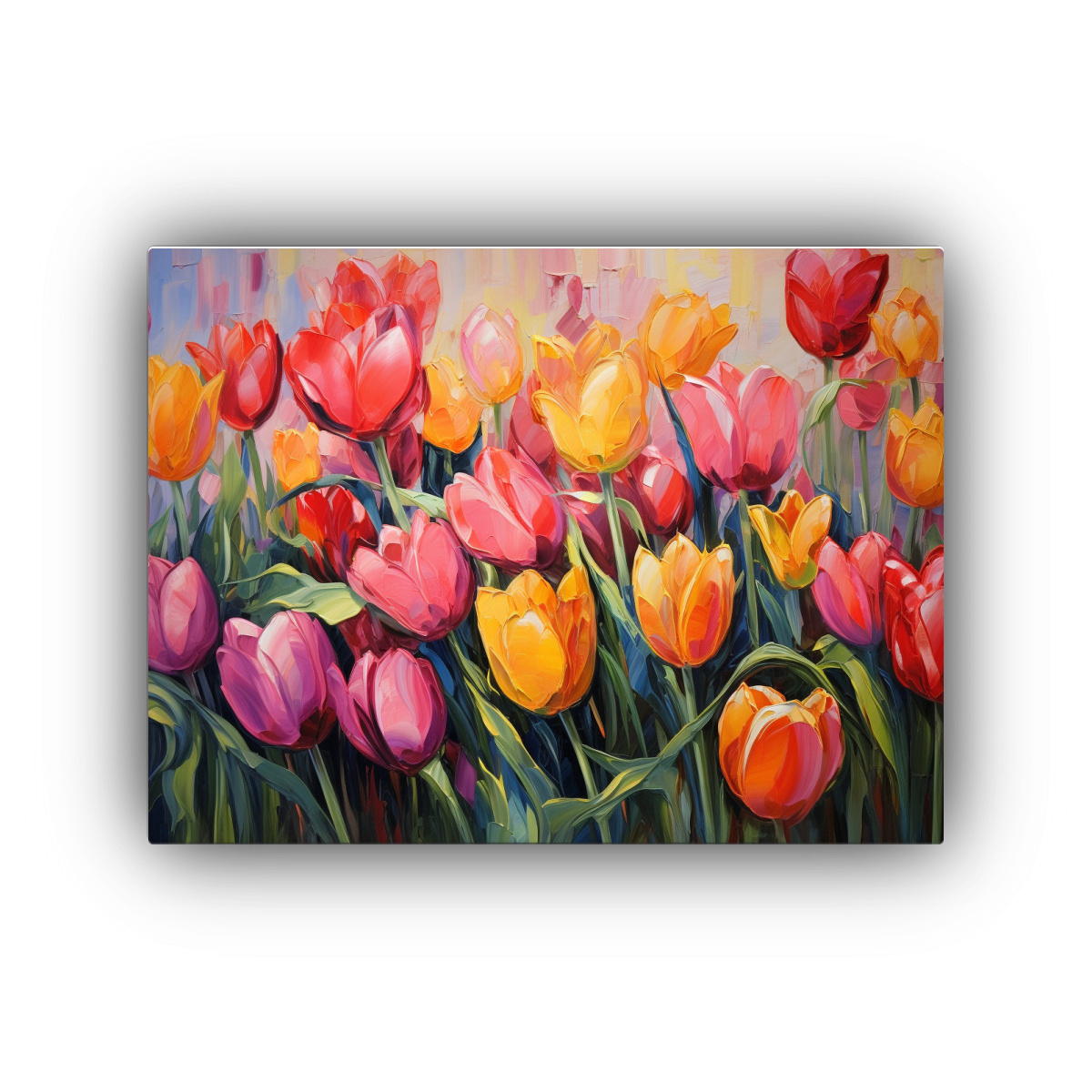 Este cuadro de tulipanes abstractos quedaría perfecto en el salón principal de tu casa, creando un punto focal elegante y colorido Combínalo con muebles en tonos neutros para resaltar su belleza y añadir un toque de frescura primaveral a tu espacio