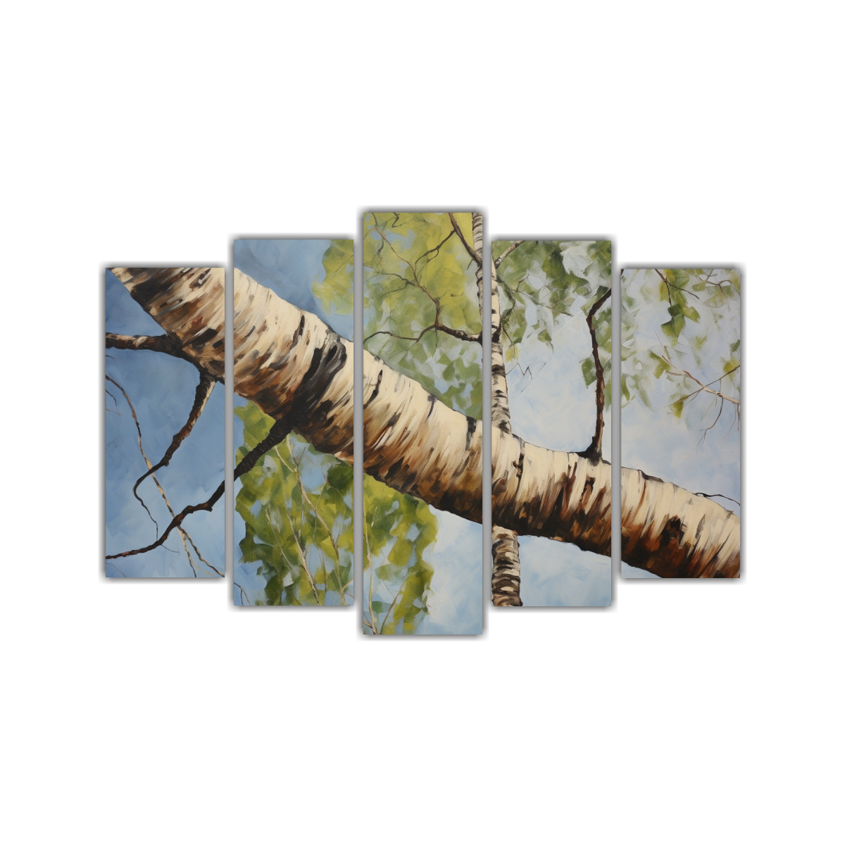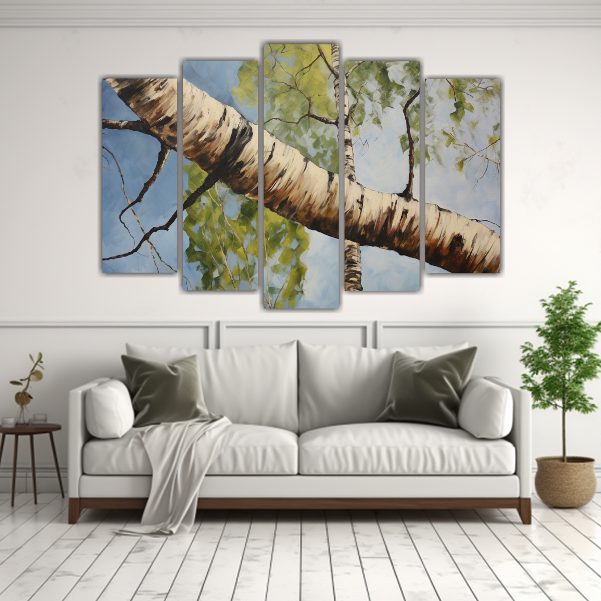 Este cuadro abstracto de un árbol de abedul en tonos de gris, azul marino, chocolate y plateado sería ideal para decorar tu sala de estar Combínalo con muebles de colores neutros para crear un ambiente elegante y moderno
