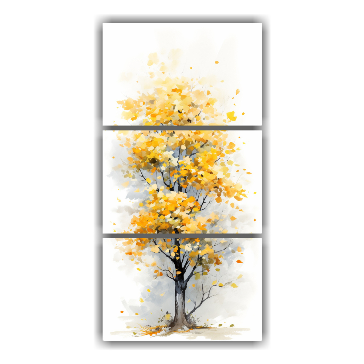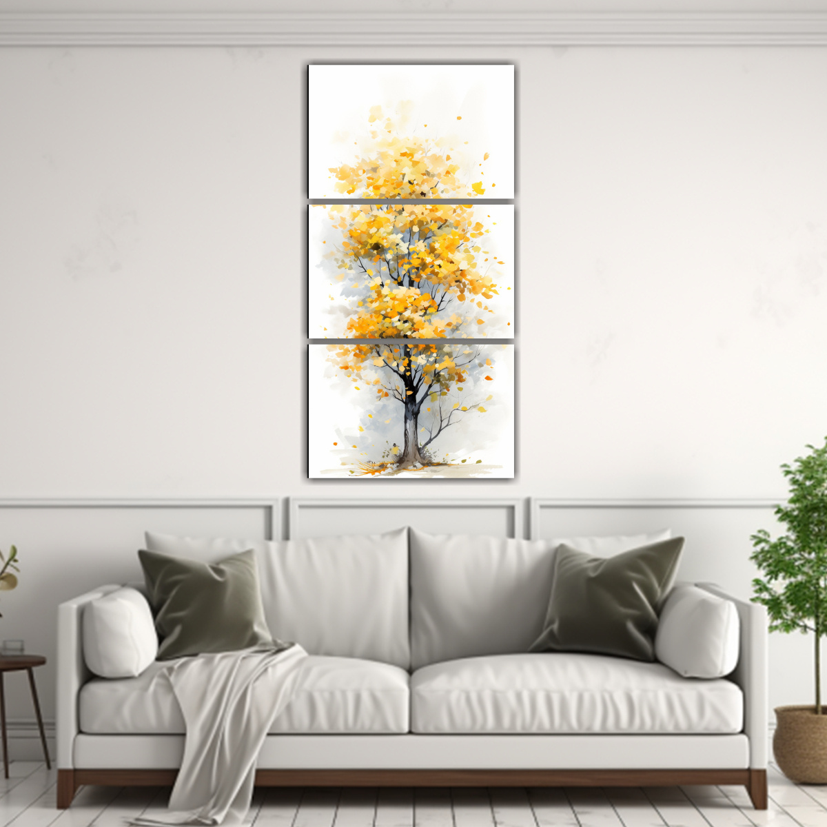 Este cuadro abstracto de un árbol de acebo en colores amarillo y blanco se vería espectacular en la sala de estar, sobre un sofá de tonos neutros para resaltar su belleza y aportar un toque de naturaleza y elegancia a tu hogar
