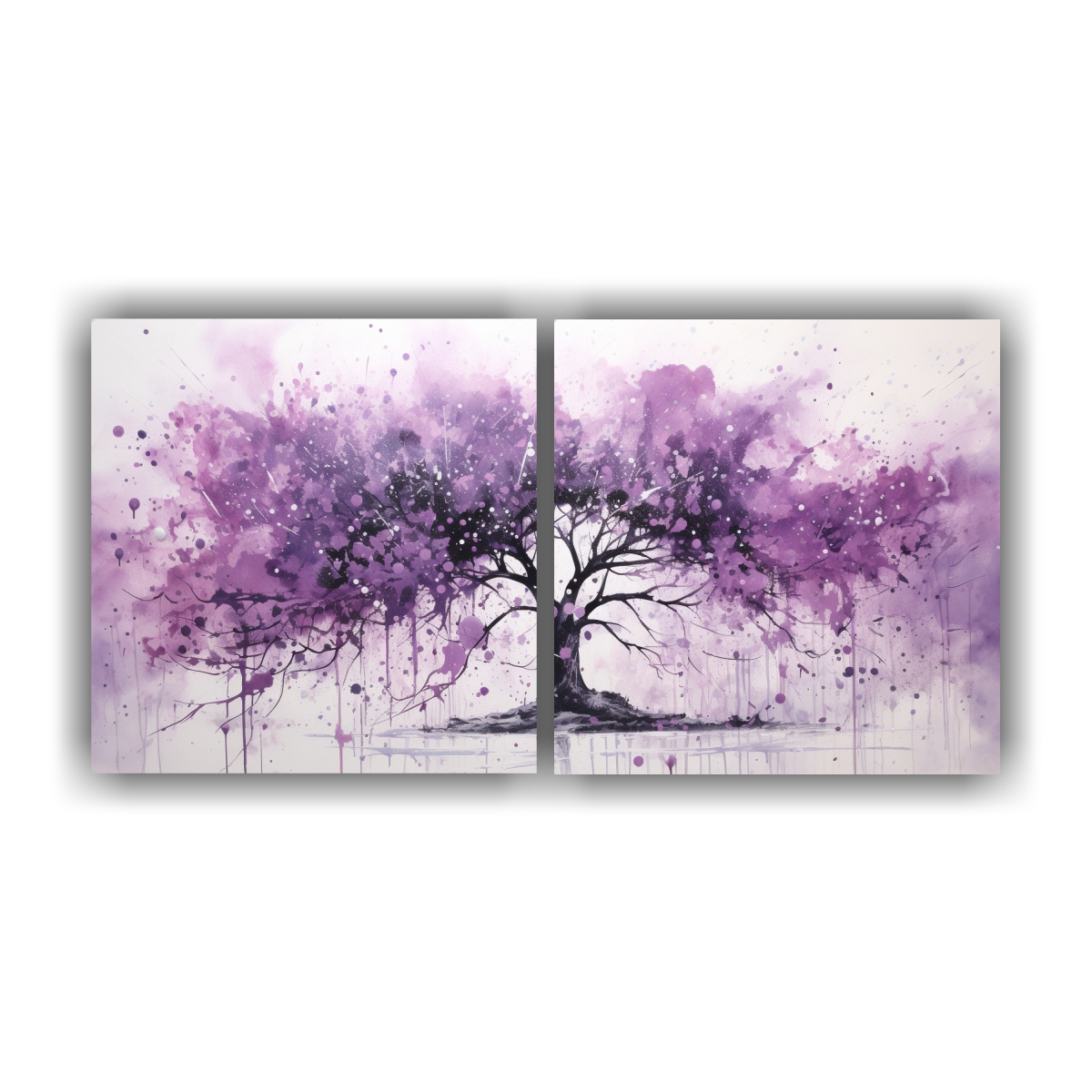 Este cuadro abstracto de un árbol de acebo en colores púrpura y negro sería ideal para decorar un salón moderno o una oficina elegante Combina perfectamente con muebles de tonos neutros y aporta un toque de sofisticación y misterio al ambiente