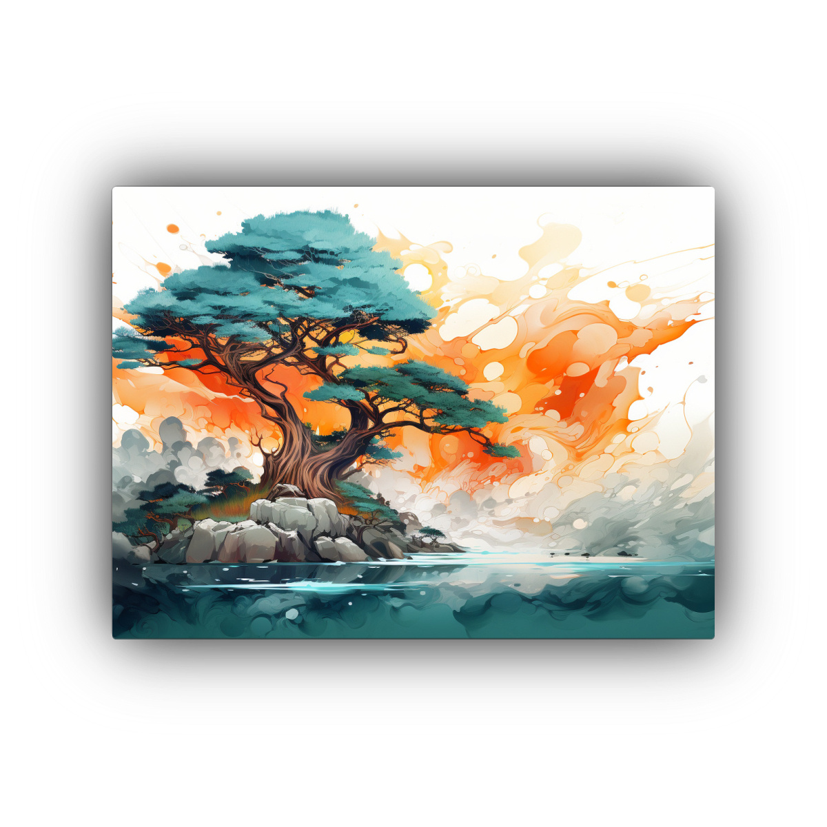 Decora tu sala de estar, dormitorio o incluso tu oficina con esta obra de arte moderna Coloca el cuadro abstracto de un árbol de ciprés en colores turquesa y naranja en una pared blanca para crear un impacto visual sorprendente Combínalo con muebles en tonos neutros o madera para resaltar su belleza y lograr un ambiente armonioso y lleno de estilo