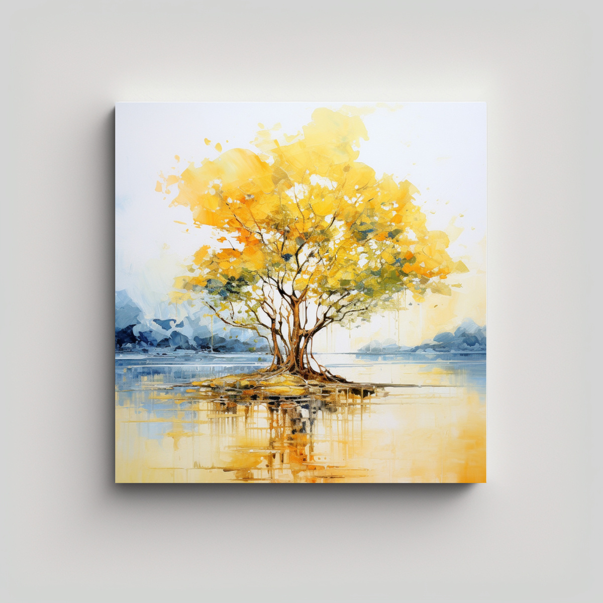 Pintura Abstracta De Un árbol De Manglar En Colores Amarillo Y Dorado En Lienzo De Tela