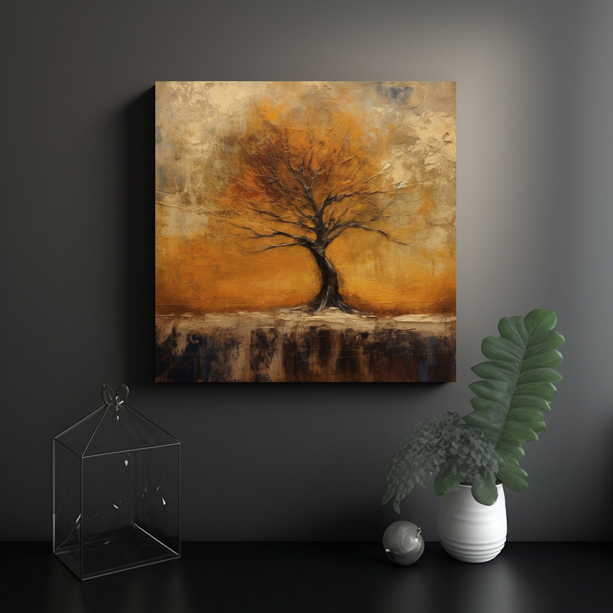 Para realzar la belleza de este cuadro abstracto de un árbol en otoño, te recomendamos colocarlo en una pared blanca junto a muebles de tonos neutros y elementos decorativos en colores tierra ¡Crearás un ambiente acogedor y vanguardista!
