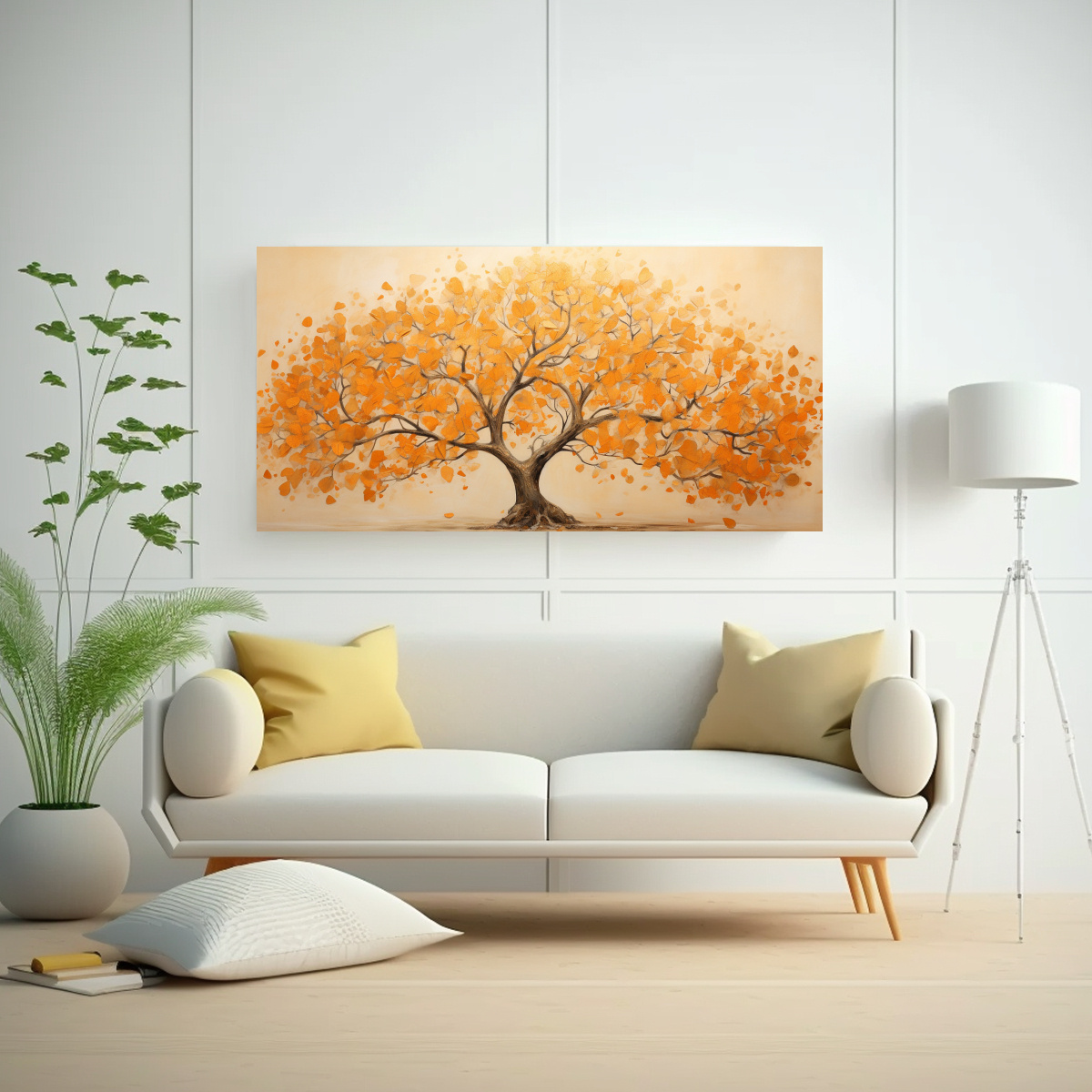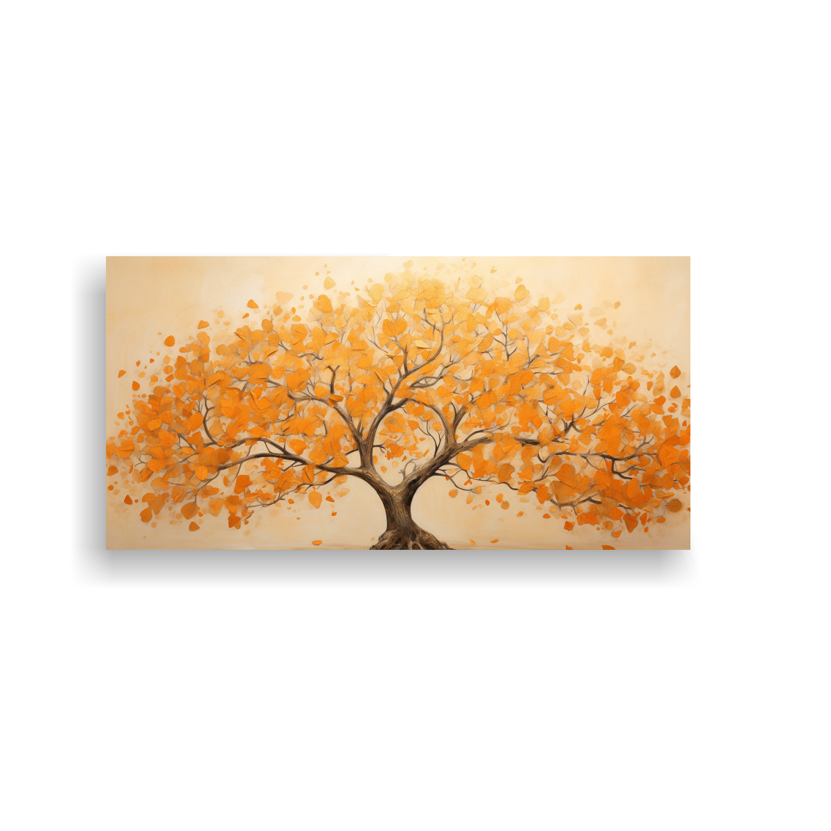 Renueva tu espacio con este cuadro abstracto de un árbol naranja en contraste Con detalles en beige, gris, coral y amarillo claro, este diseño único de DecoCuadros brindará elegancia a tu decoración ¡Aprovecha los precios más bajos!