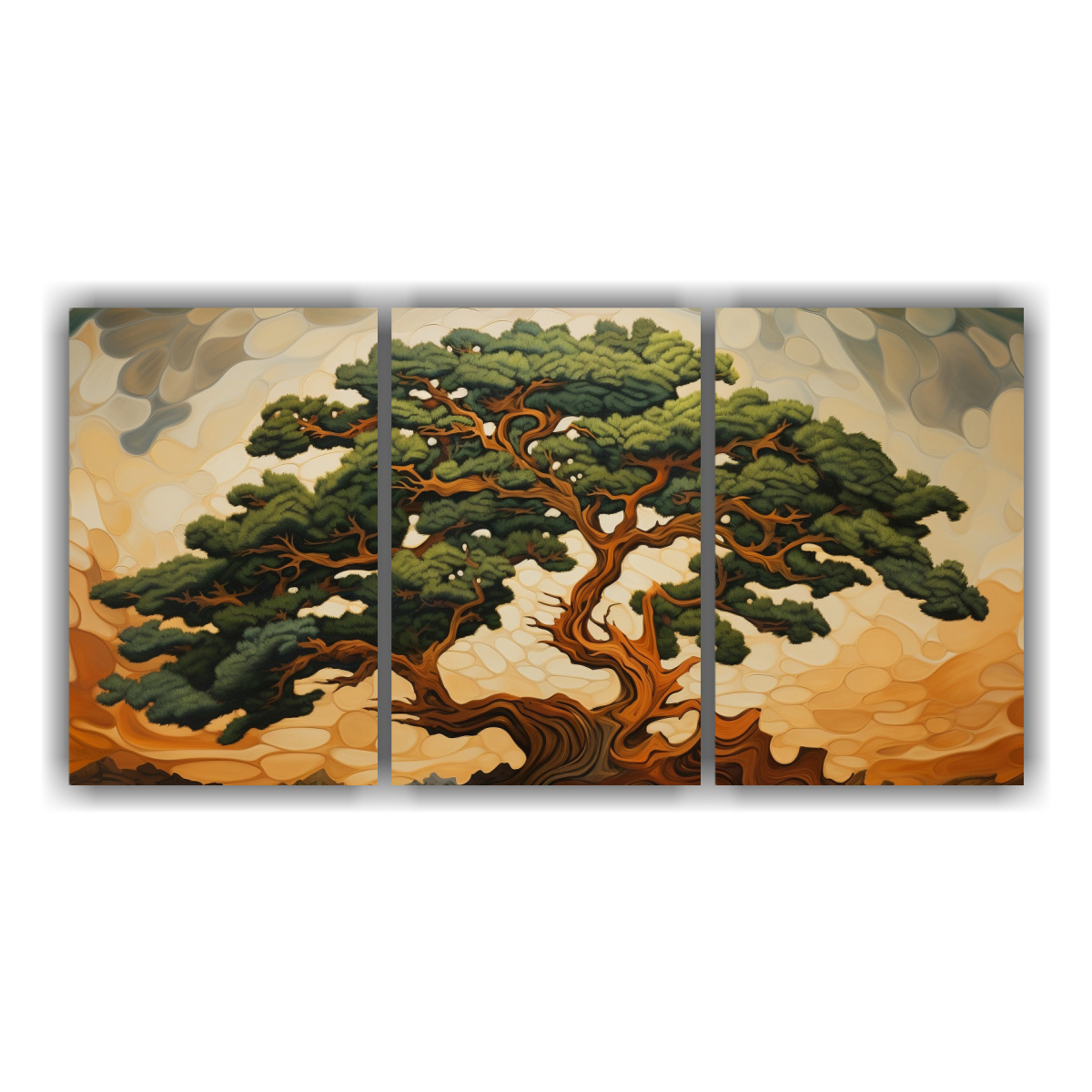 Pintura Abstracta De Un Cedro Con Detalles Intrincados En Tela De Alta Calidad