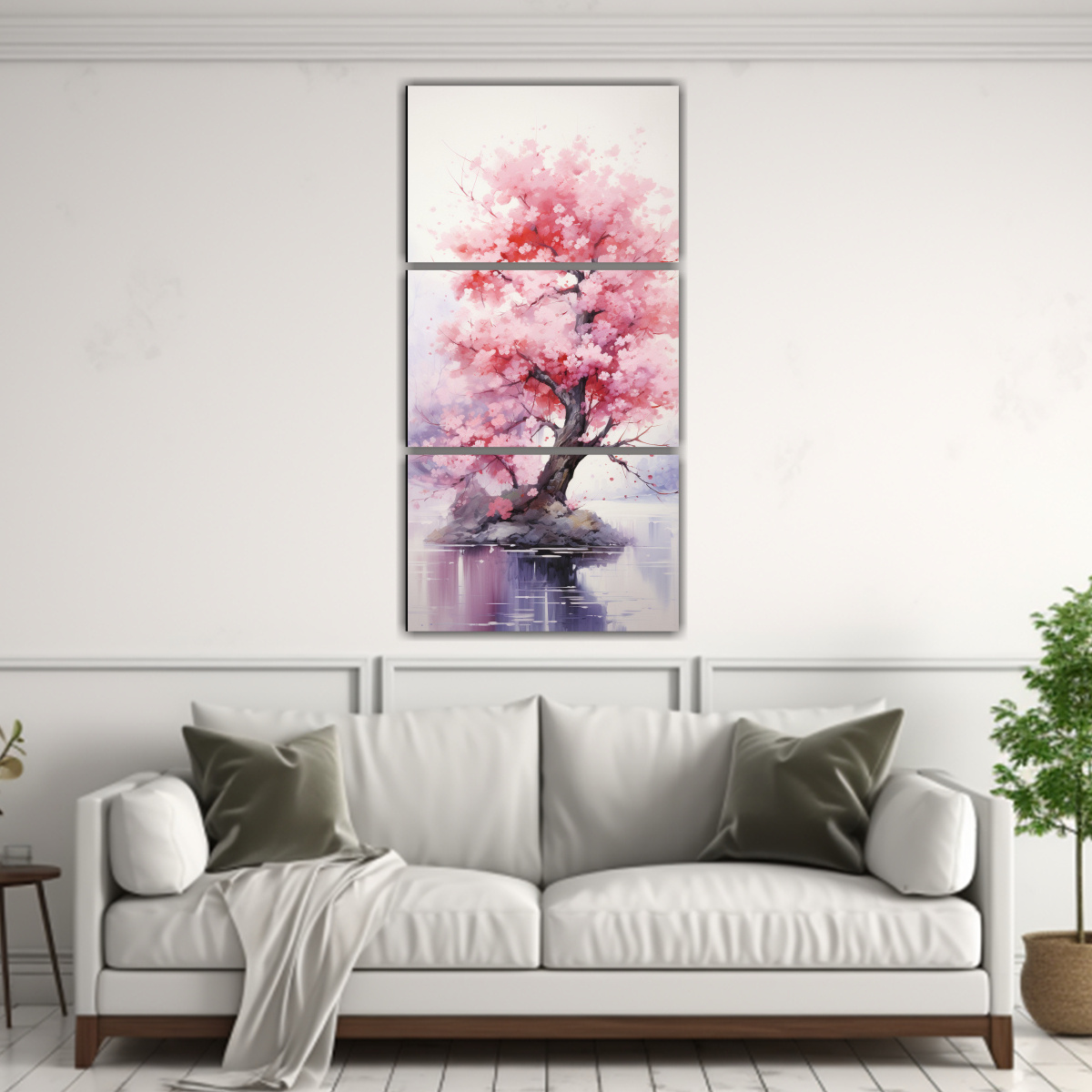 Este cuadro abstracto de un cerezo rojo y rosa en composición colorida es ideal para colocar en el salón, creando un punto focal llamativo y lleno de energía Combínalo con muebles en tonos neutros como blanco y gris, y añade cojines o accesorios en colores lila y plateado para lograr un ambiente armonioso y moderno