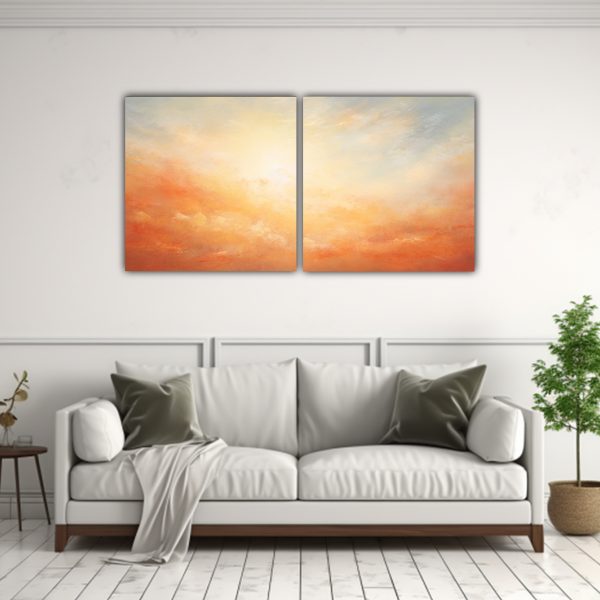 Coloca este cuadro en tu sala de estar para crear un ambiente acogedor y elegante Combínalo con muebles en tonos neutros para resaltar la paleta de colores naranjas, plateados, corales y beige ¡Aporta estilo y sofisticación a tu hogar con esta pieza única de arte!