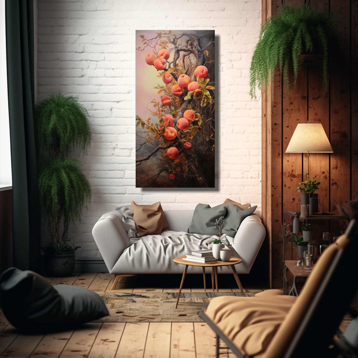 Este cuadro abstracto de un melocotonero encajará perfectamente en tu sala de estar o comedor, aportando un toque de alegría y color Combínalo con muebles de tonos neutros como grises y beige, y agrega cojines o accesorios decorativos en los colores lila, coral y carmesí para crear una armonía visual ¡Será el centro de atención de tu espacio!