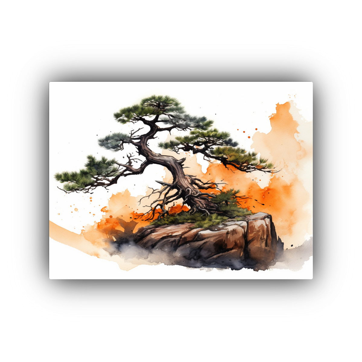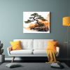 Pintura Abstracta De Un Pino Bonsái En Colores Naranja Y Negro