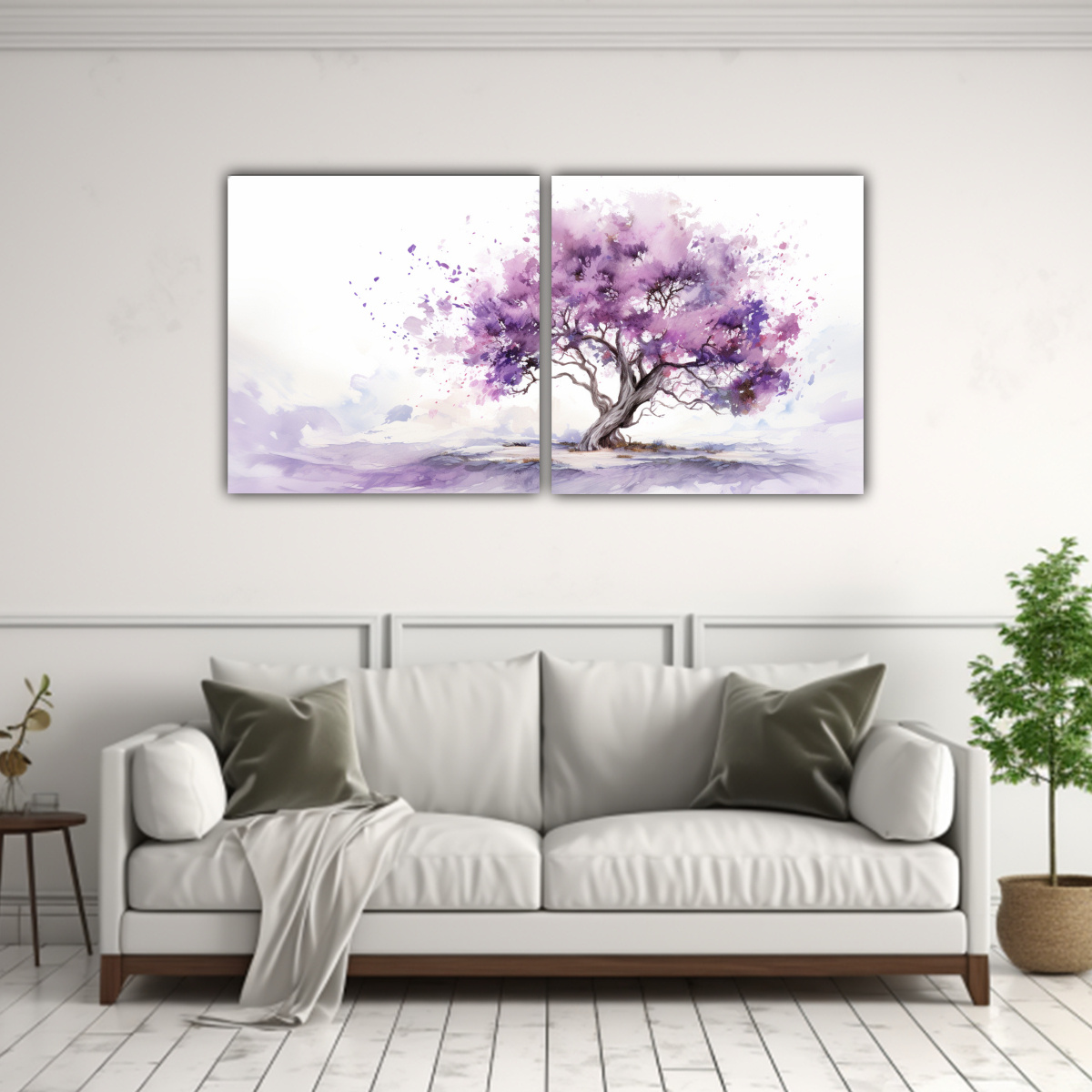Para realzar la belleza de este cuadro abstracto de un roble en colores morado y blanco, te recomendamos colocarlo en un espacio amplio y con una iluminación tenue Combínalo con muebles de tonos neutros para lograr un ambiente sofisticado y moderno