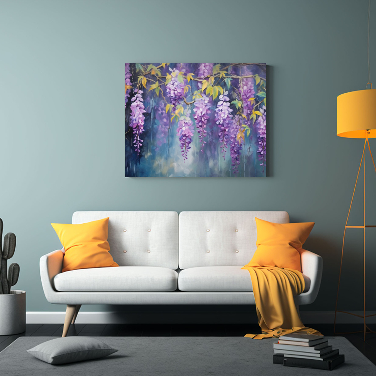 Este cuadro abstracto de wisteria en estilo Estilo óleo quedaría perfecto en el salón, creando un ambiente elegante y sofisticado Combínalo con muebles en tonos neutros para resaltar su belleza y darle un toque de modernidad a tu hogar