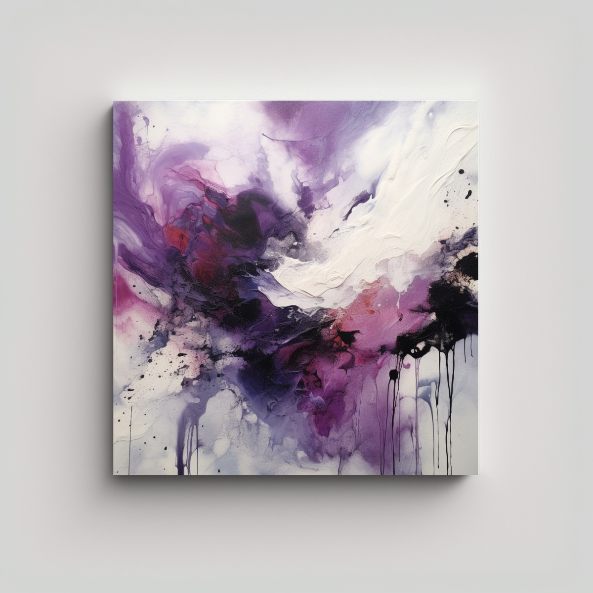 Este cuadro abstracto decadente en tonos morados se vería espectacular en un ambiente minimalista o moderno, aportando un toque de elegancia y misterio Colócalo en una pared blanca para resaltar su belleza y crear un contraste impactante