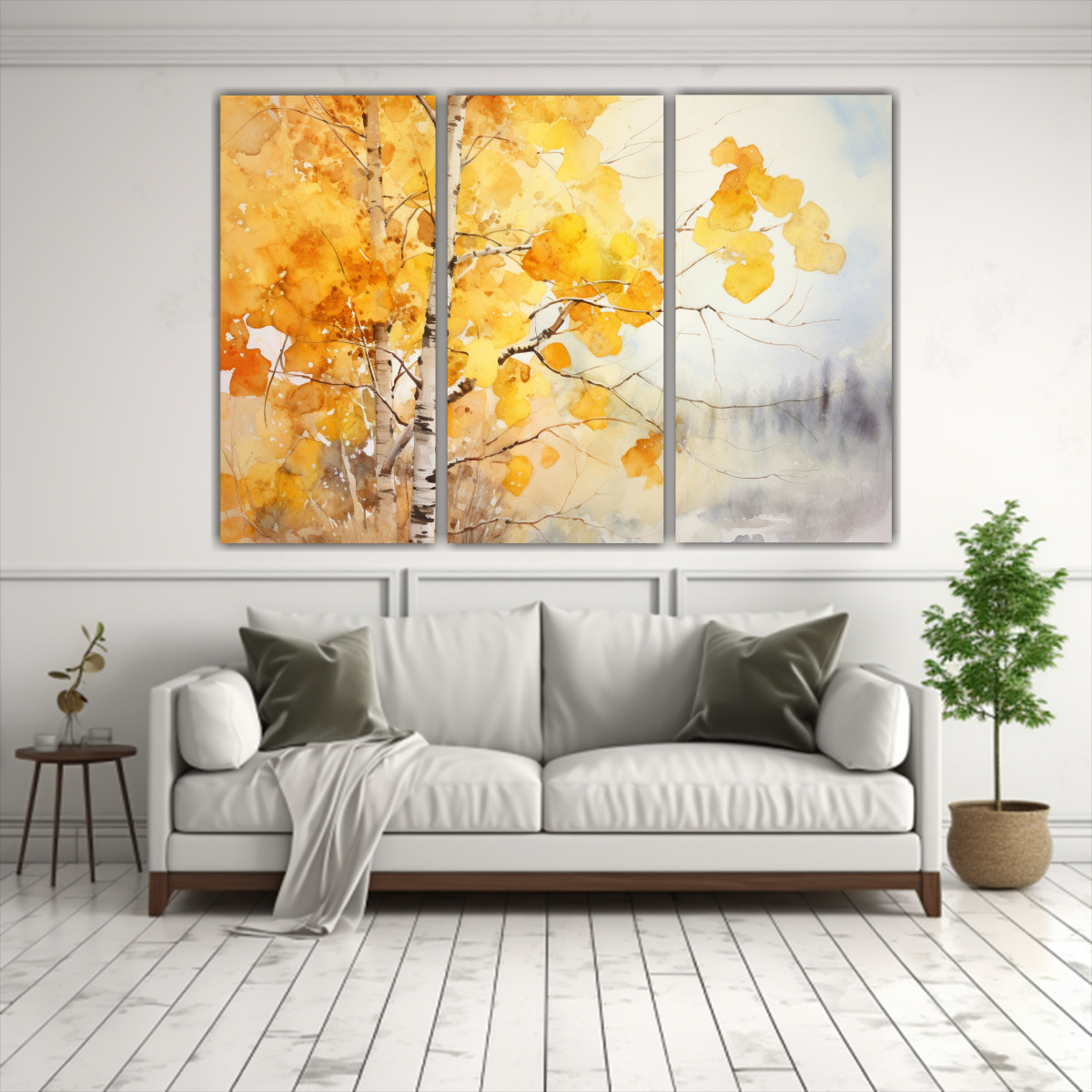 Pintura Abstracta Del árbol Temblón Del Aspen En Colores Dorados