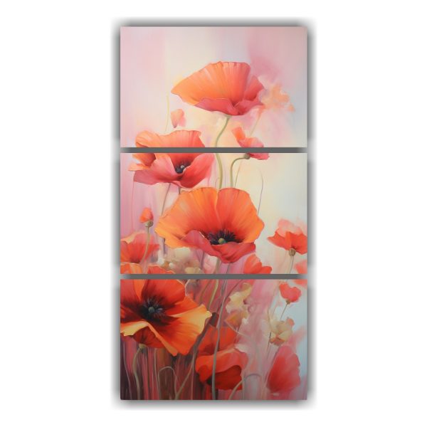 Pintura Abstracta Detallada De Amapolas En Tres Lienzos