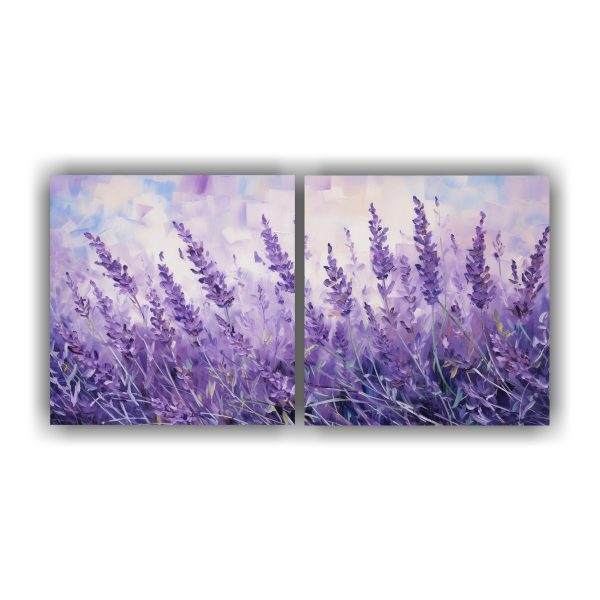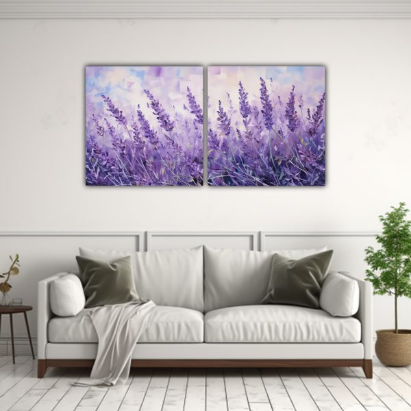 Este cuadro combina perfectamente en un ambiente minimalista y moderno, sobre un sofá gris claro o una pared blanca, resaltando sus tonos lavanda y plateados Acompáñalo con cojines en tonos violeta para lograr un espacio armonioso y sofisticado