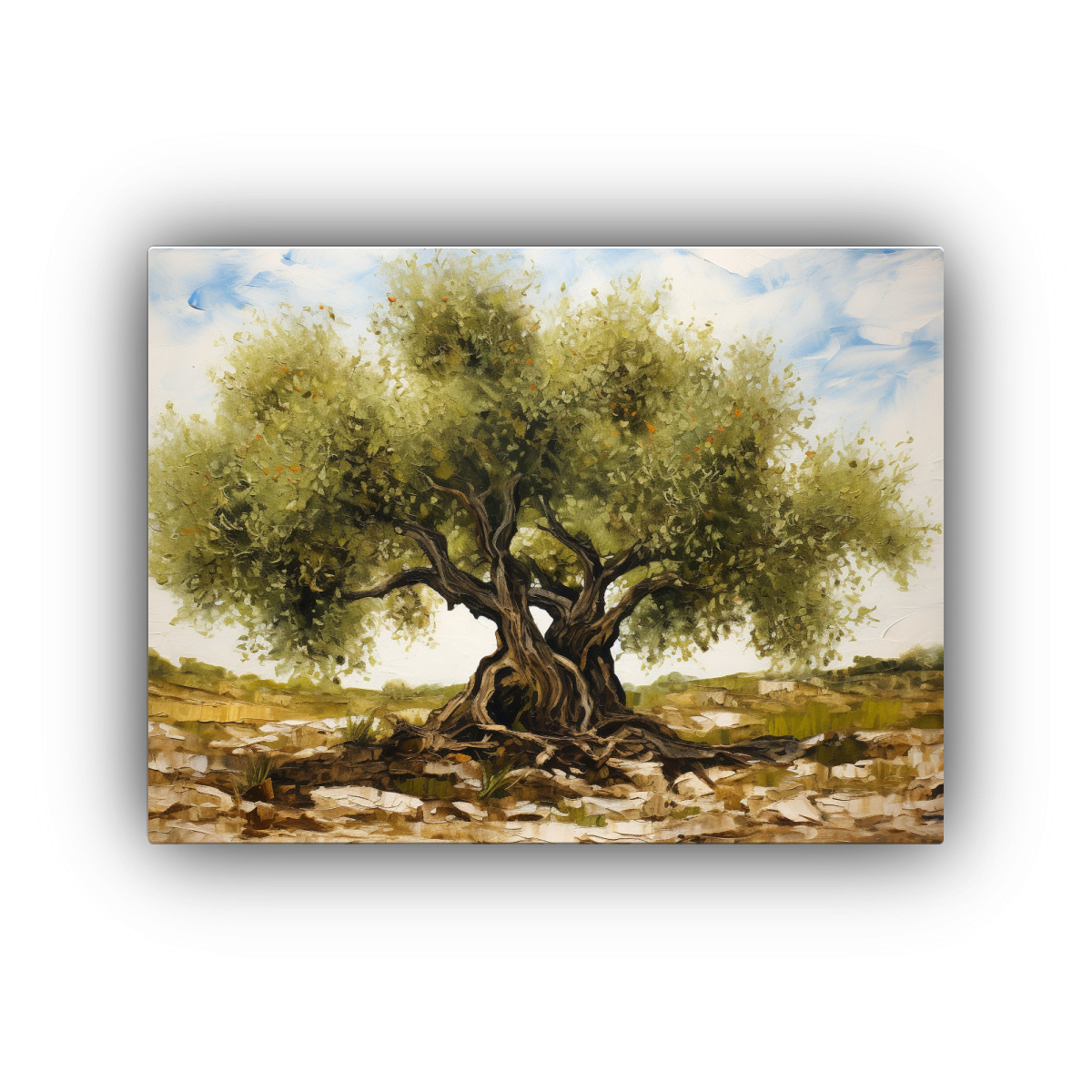 Impresionante pintura abstracta de un olivo con detalles en colores vibrantes que realzarán la decoración de tu hogar Calidad premium y envío gratis en Santiago, ¡Hazte con el tuyo hoy!