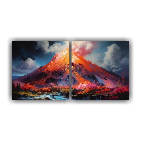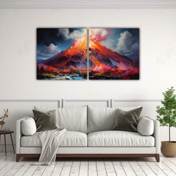 Este cuadro abstracto de un volcán con colores vibrantes sería perfecto para realzar la energía y vitalidad de una sala de estar moderna Colócalo en una pared central para crear un punto focal impresionante