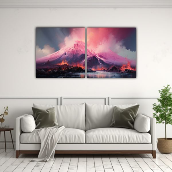 Este cuadro abstracto de un volcán con tonos rosados sería ideal para decorar una sala de estar moderna o un dormitorio contemporáneo Combínalo con muebles en tonos neutros para resaltar su belleza y crear un ambiente sofisticado