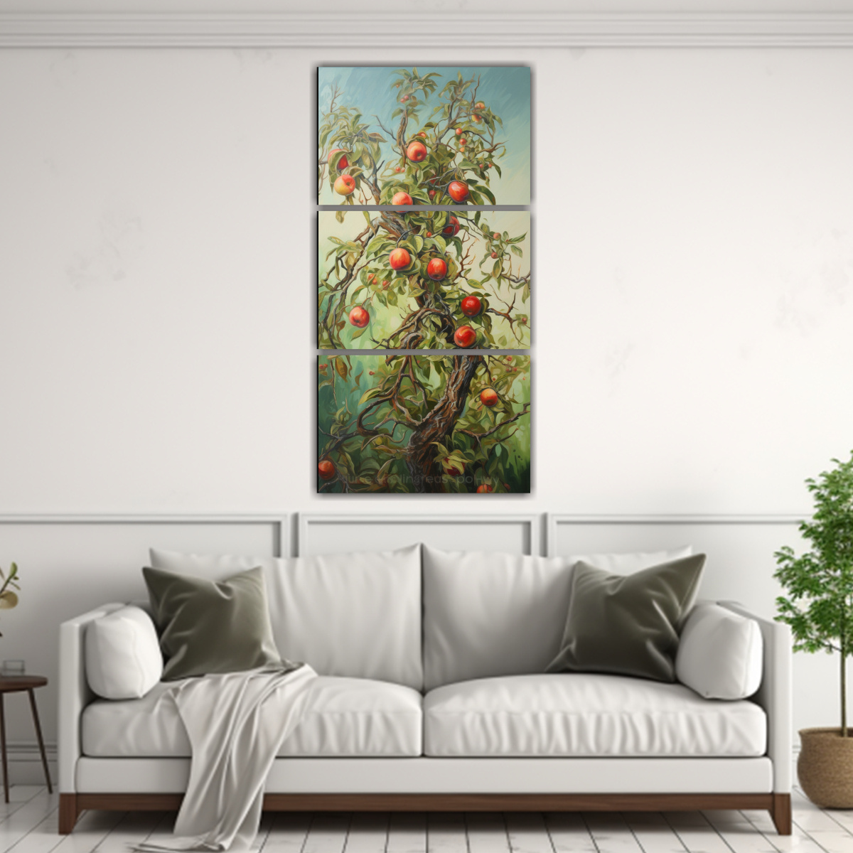 Este cuadro abstracto árbol de manzana encajaría perfectamente en tu sala de estar sobre un sofá de tonos neutros, aportando un toque de color y sofisticación Complementa la decoración con cojines en tonos similares para una armonía visual única