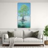 Este cuadro se vería maravilloso en el salón principal de tu hogar, colocado sobre un mueble de estilo moderno o minimalista Puedes combinarlo con cojines en tonos turquesa o verde azulado para resaltar los colores del cuadro y crear un ambiente armonioso y elegante