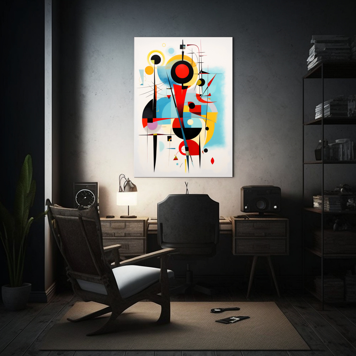 Este cuadro es ideal para decorar tu sala de estar Colócalo sobre un mueble de color blanco para resaltar los tonos vibrantes de la pintura Combínalo con cojines en tonos rojos y amarillos para crear un ambiente acogedor y moderno ¡No esperes más y dale vida a tu hogar con esta increíble obra de arte!