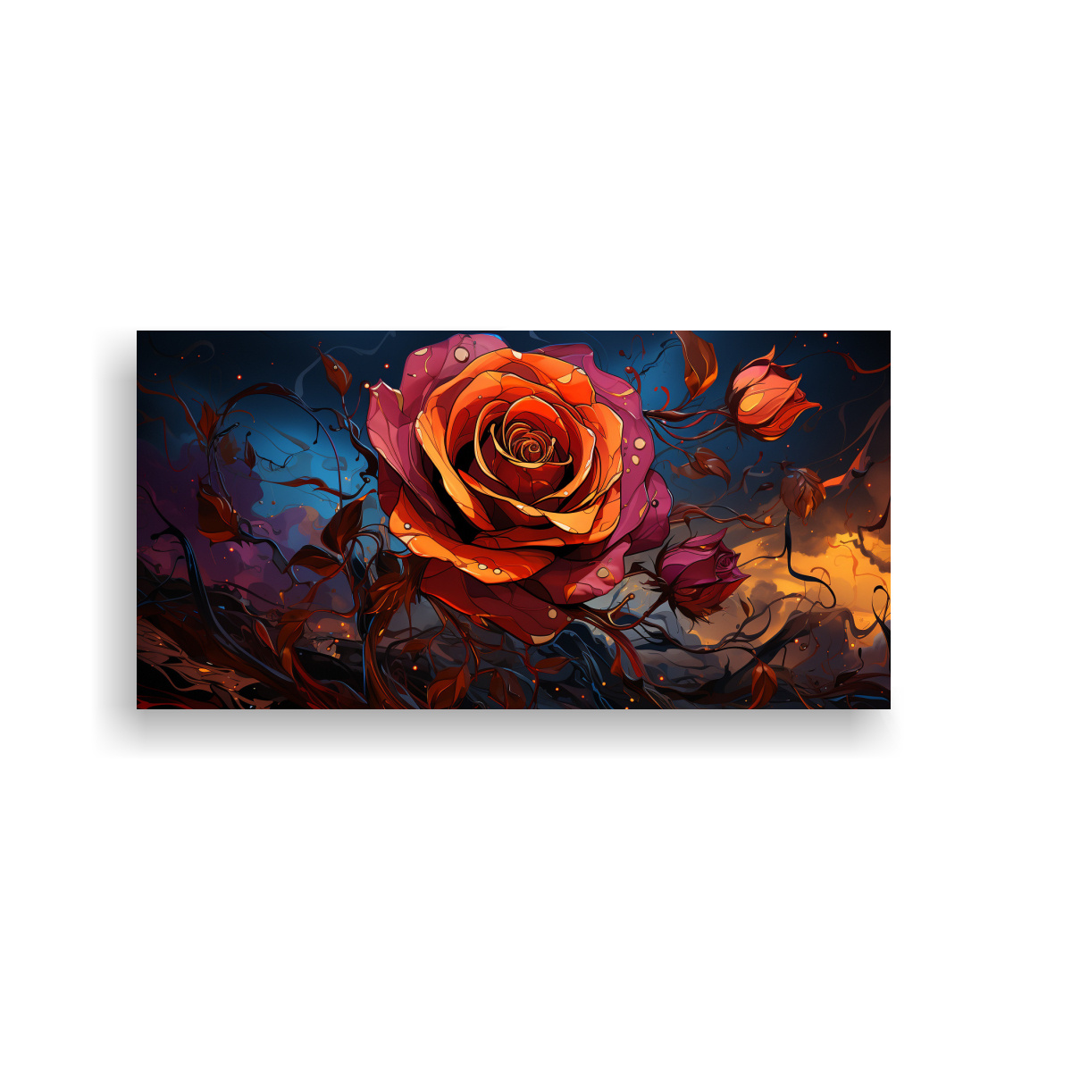 Pintura Abstracta Digital De Rosa Que Irradia Colores Lienzo Horizontal