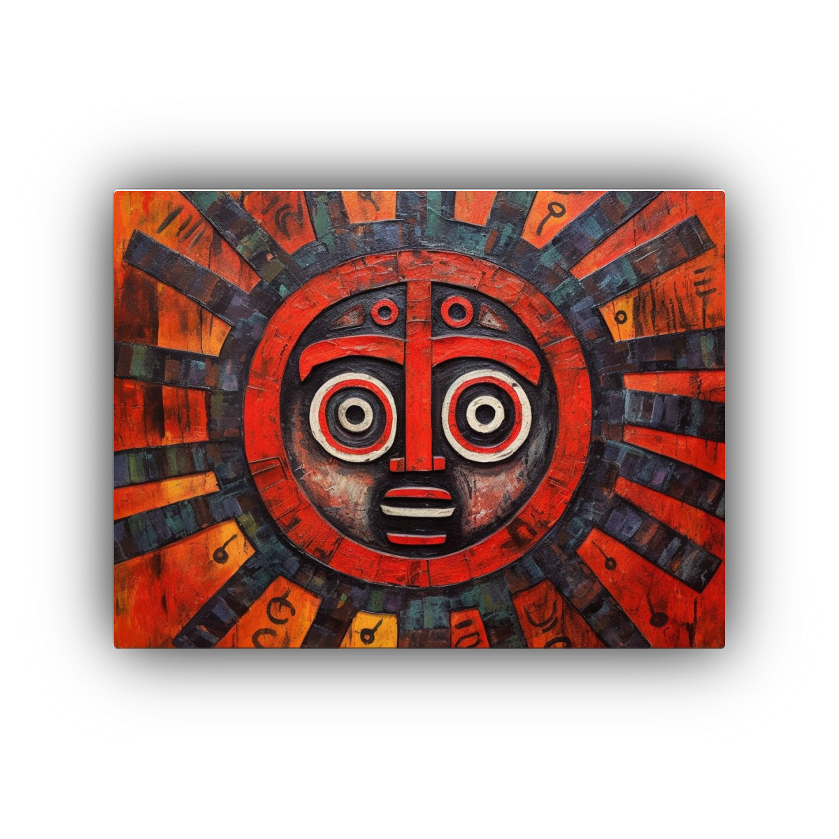 Este cuadro abstracto del dios Taino de la fuerza se vería espectacular en tu baño colocado sobre una repisa flotante junto a velas aromáticas y elementos decorativos en tonos cálidos ¡Crea un ambiente único y lleno de energía positiva!
