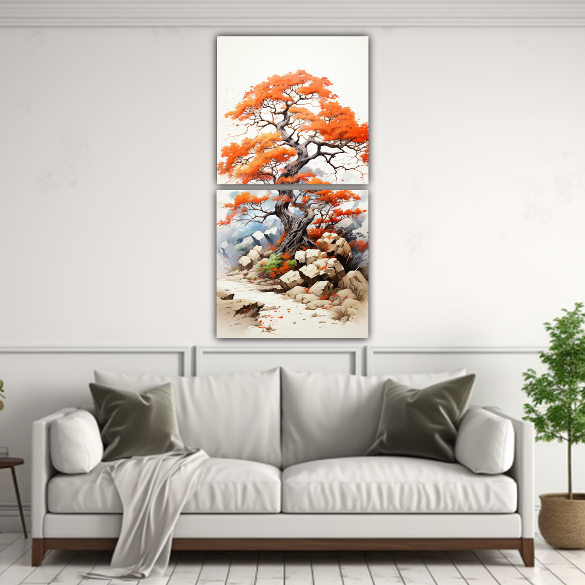 Este cuadro Pintura abstracta Dos Artes Movimiento Belleza A Juniper Tree en colores blanco y naranja es perfecto para decorar tu sala de estar Combínalo con muebles en tonos neutros como beige o gris, y agrega cojines en colores coral y turquesa para crear un ambiente moderno y vibrante ¡Destaca tu buen gusto con este diseño exclusivo de DecoCuadros!