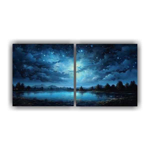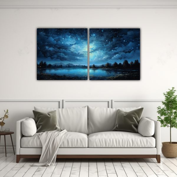 Pintura Abstracta Dos Cuadros Vintage De Noche Estrellada En Azul